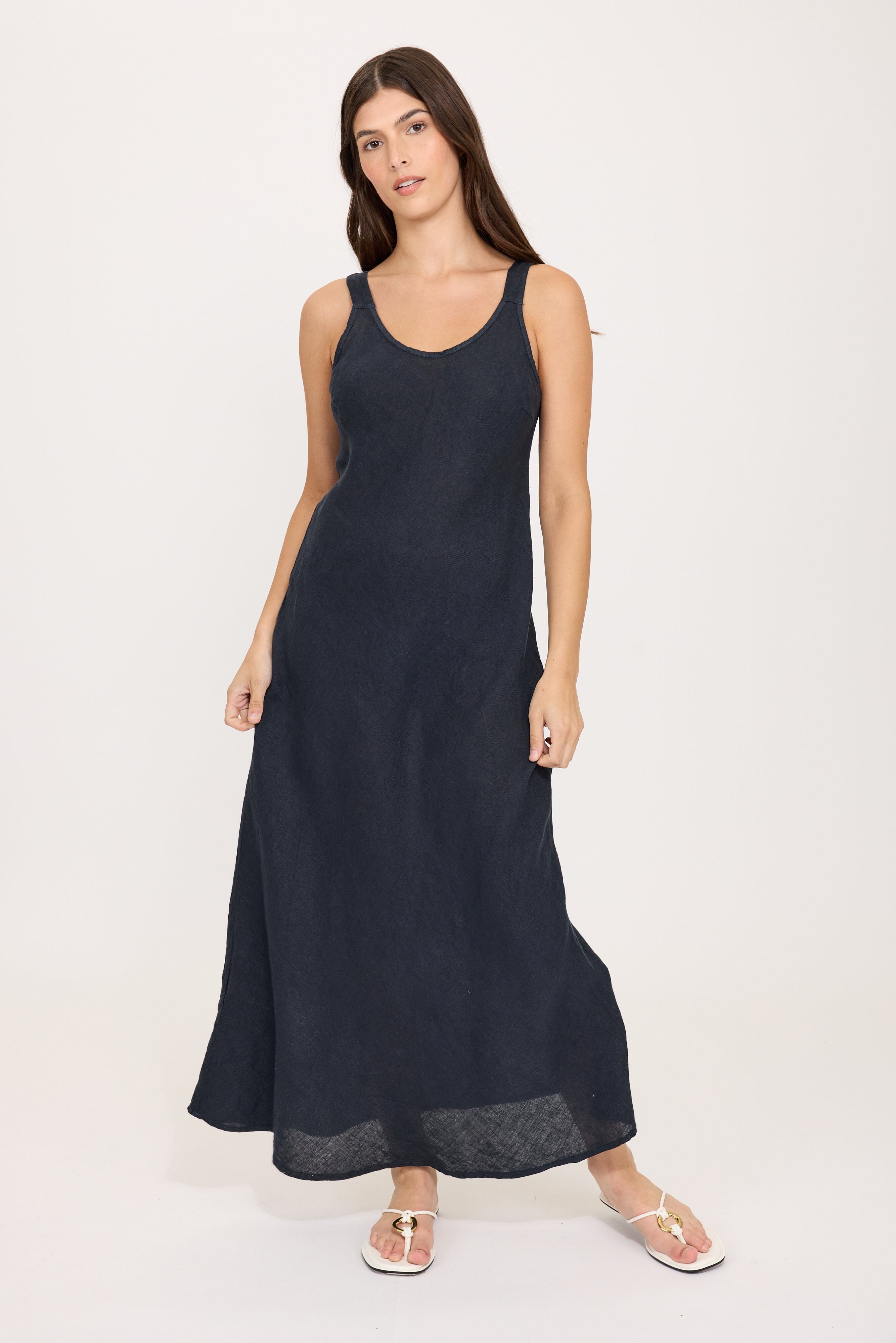 Sleek, simple and undeniably chic- this black linen slip dress is effortless sophistication at its best. Cut in a clean, flattering silhouette with a soft, breathable drape, it skims the body in all the right places while keeping you cool and comfortable.