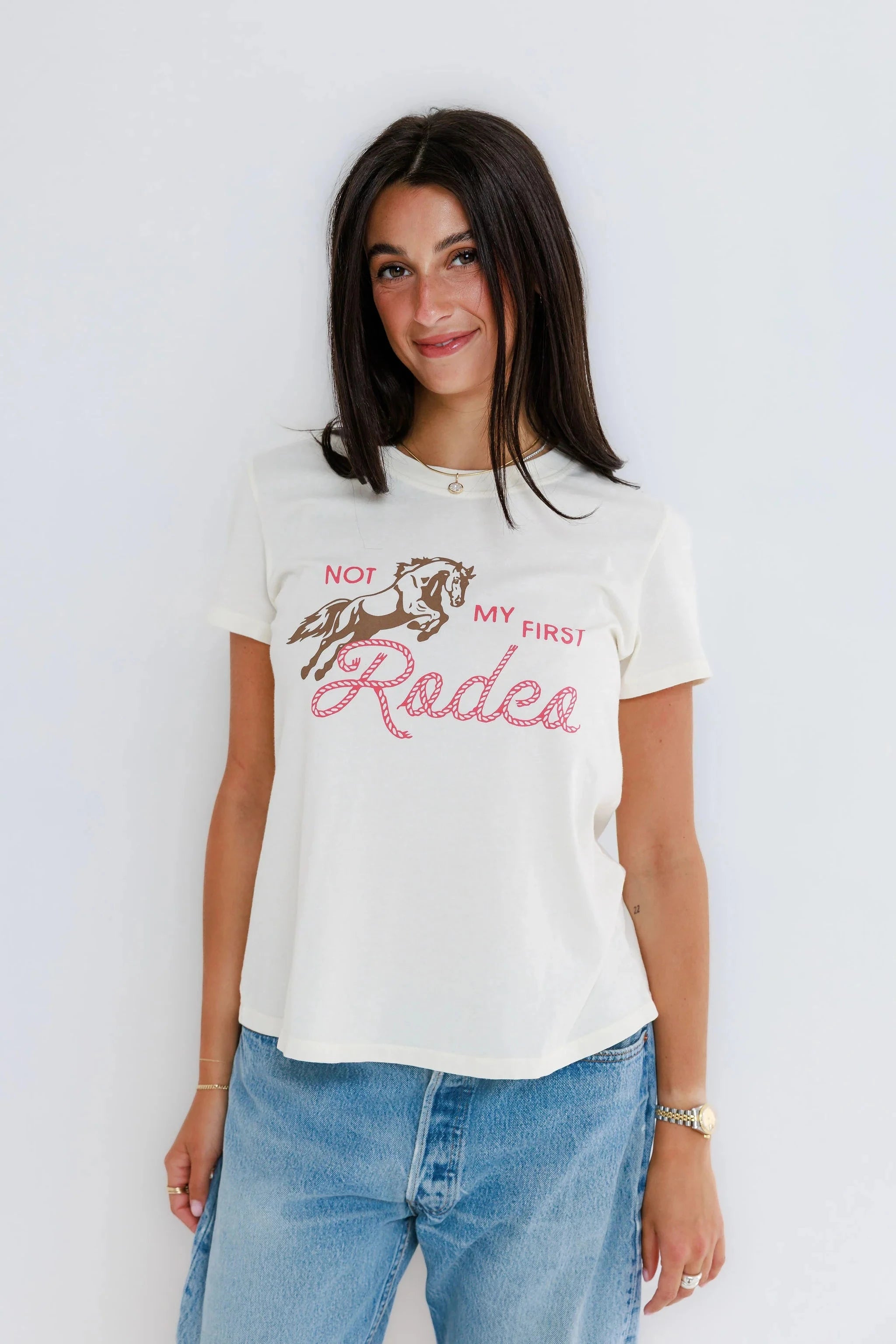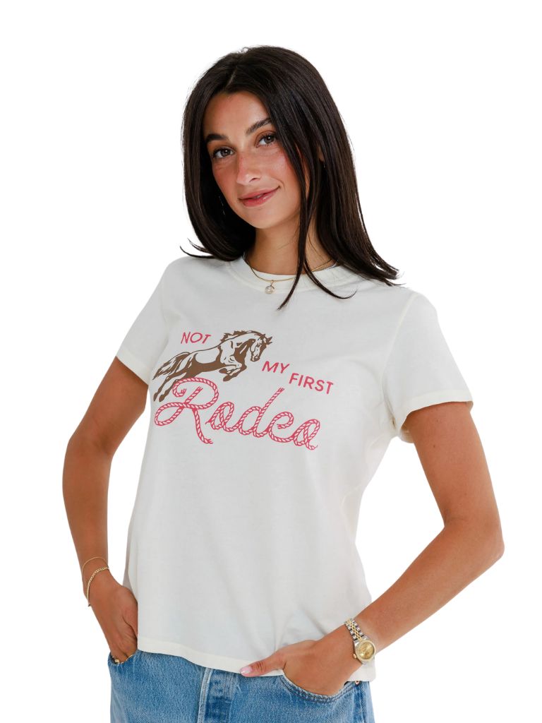 The Not My First Rodeo Femme Crew brings a little grit with a whole lot of charm. With its vintage inspired graphic and easy fit, it feels bold, playful, and quietly powerful, made for women who’ve been there and still show up smiling.