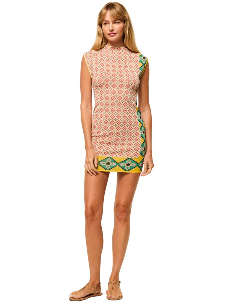 Misa Mattie Rib Knit Mini Dress- Floral Block