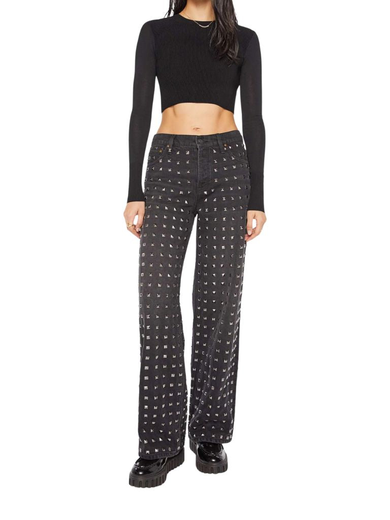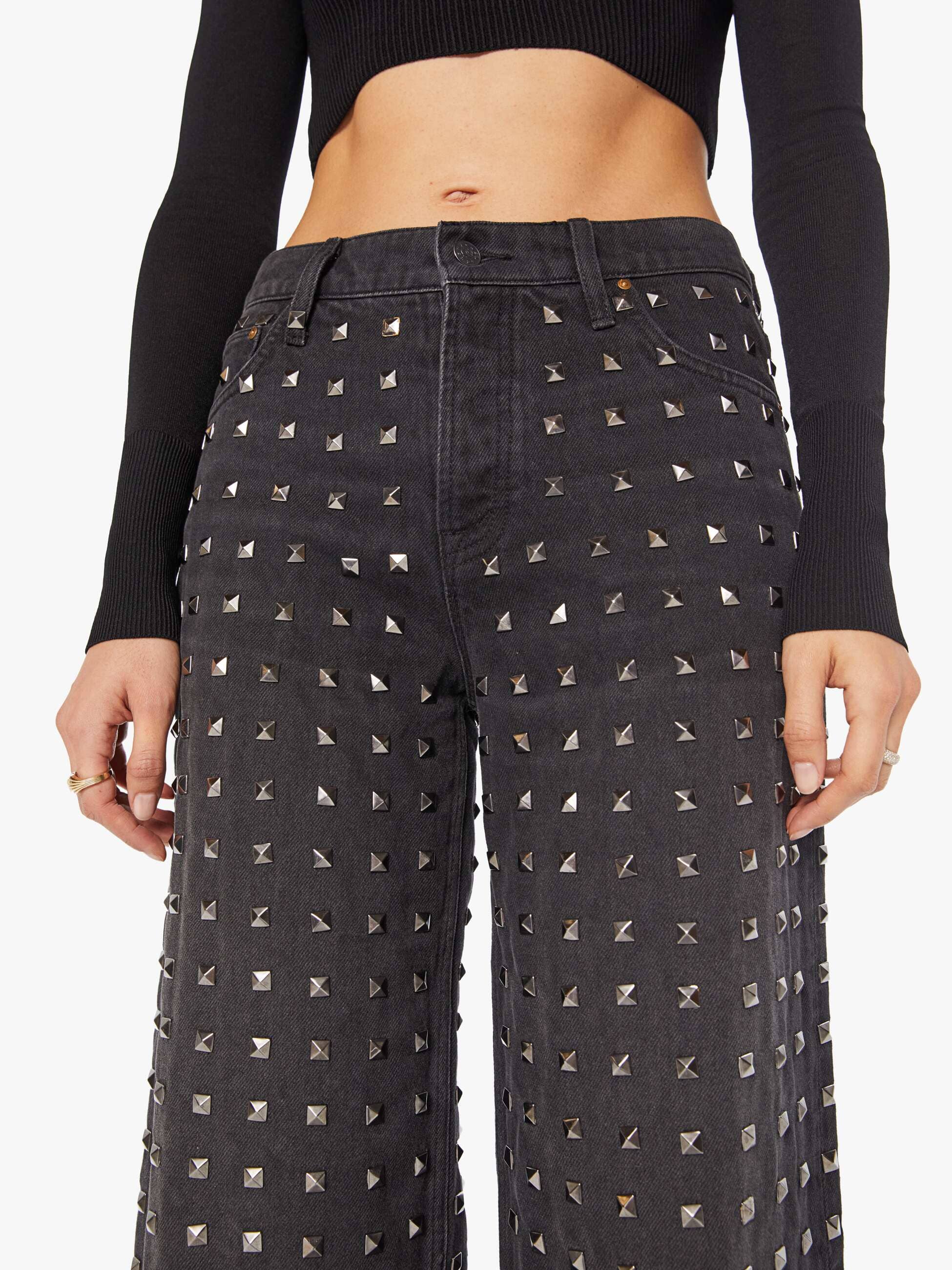 Mother Denim The Smoothie Sneak Wide Leg Jeans With Studs- Nails For Dinner