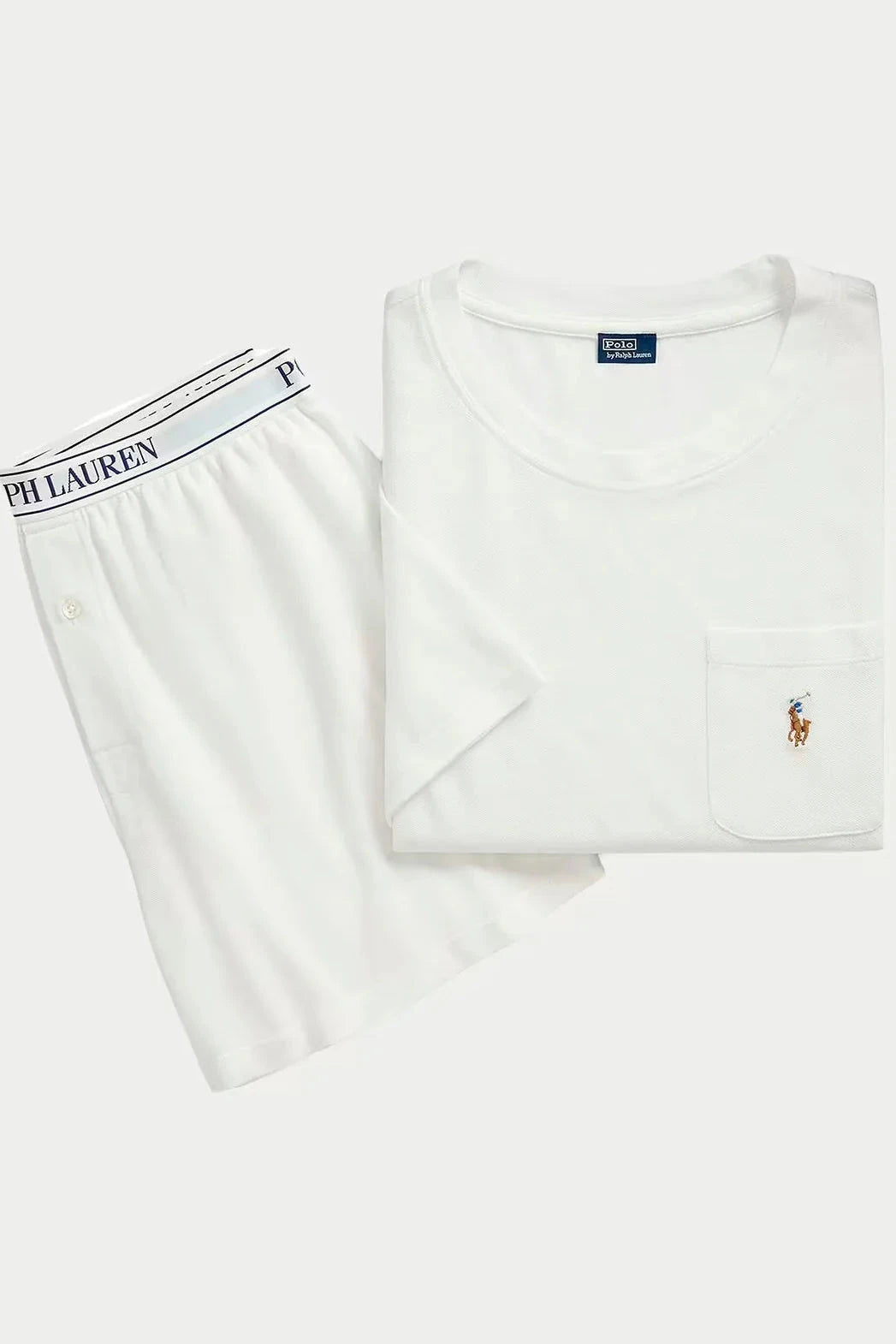 Polo Ralph Lauren Knit Oxford Short Pajama Set- Cloud White