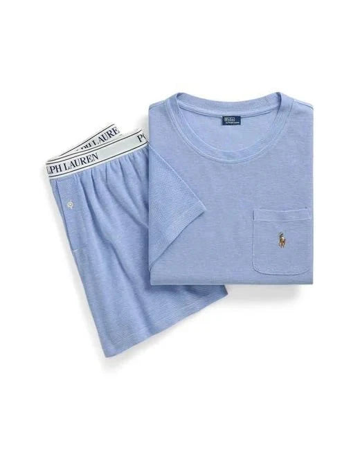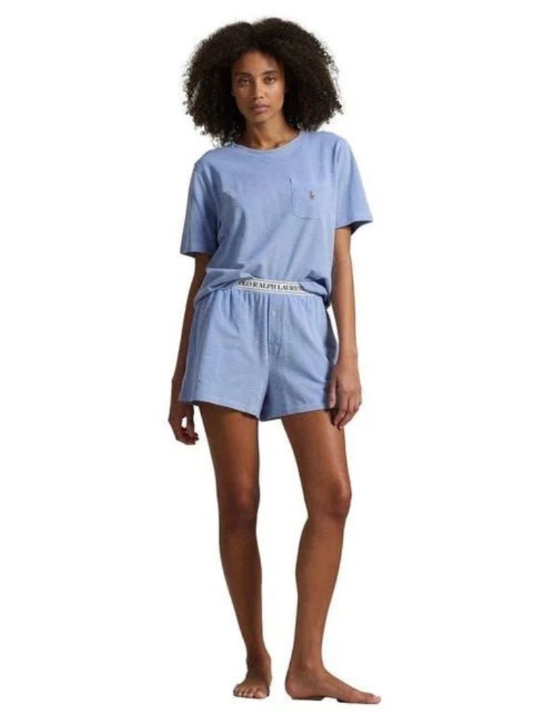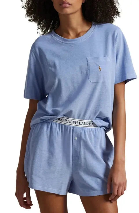 Knit with a soft cotton blend, this two-piece pajama set comes with a boxy-fitting crewneck tee and shorts that feature our signature “Polo Ralph Lauren” elastic waistband.