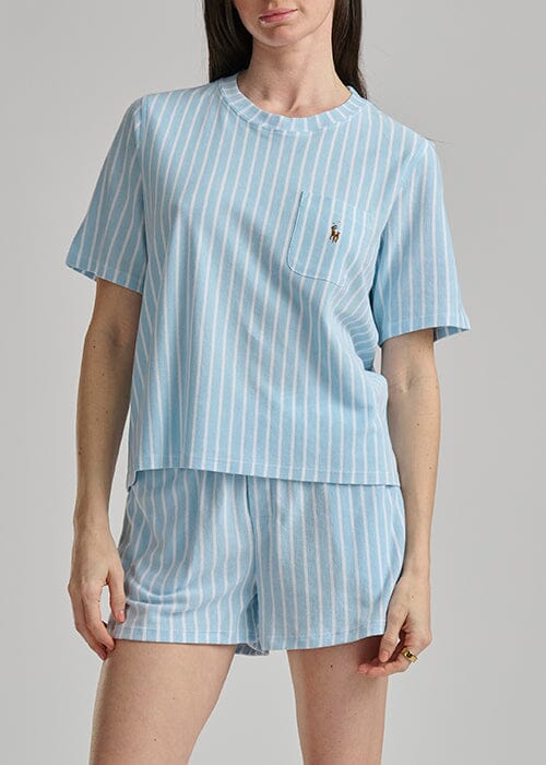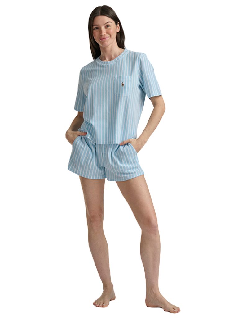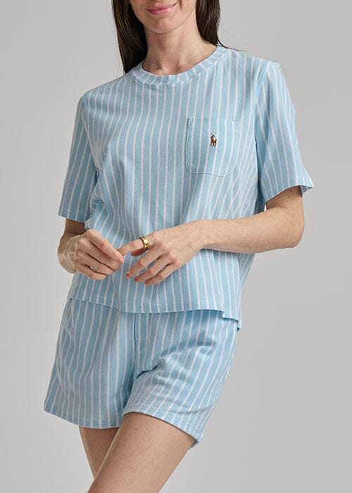 Crafted from cotton-blend knit Oxford fabric for a relaxed drape, this striped pyjama set pairs a short-sleeve crewneck tee with shorts featuring our signature "Polo Ralph Lauren" elastic waistband.