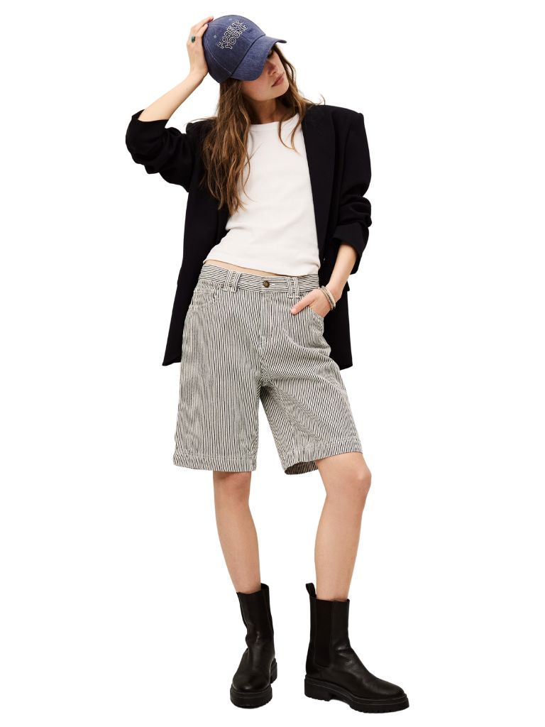 Oui, vous pouvez porter des shorts ! La tendance du moment est le bermuda, à porter avec un t-shirt court ou un débardeur pour une ambiance cool chic. Bien sûr, rien ne remplace le short en jean coupé de base, porté avec une chemise oversize blanche ou un t-shirt cool.