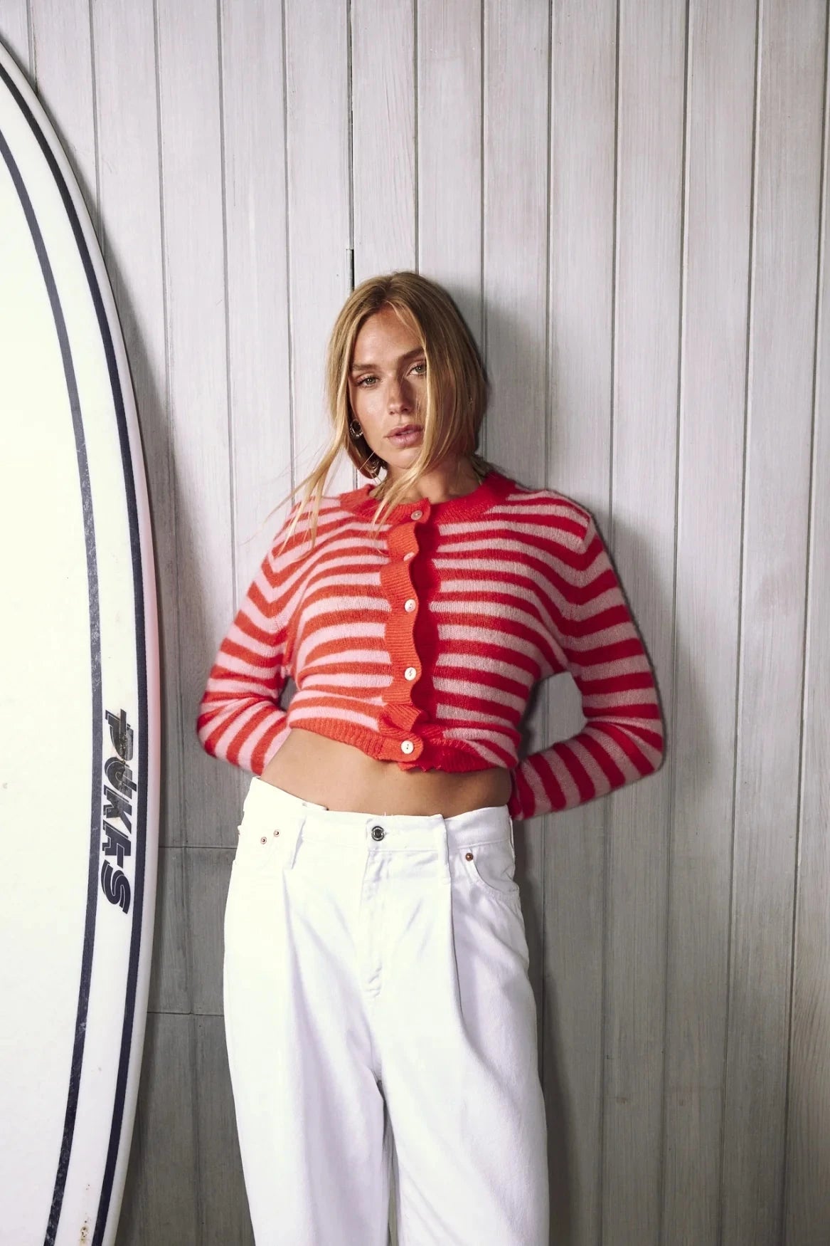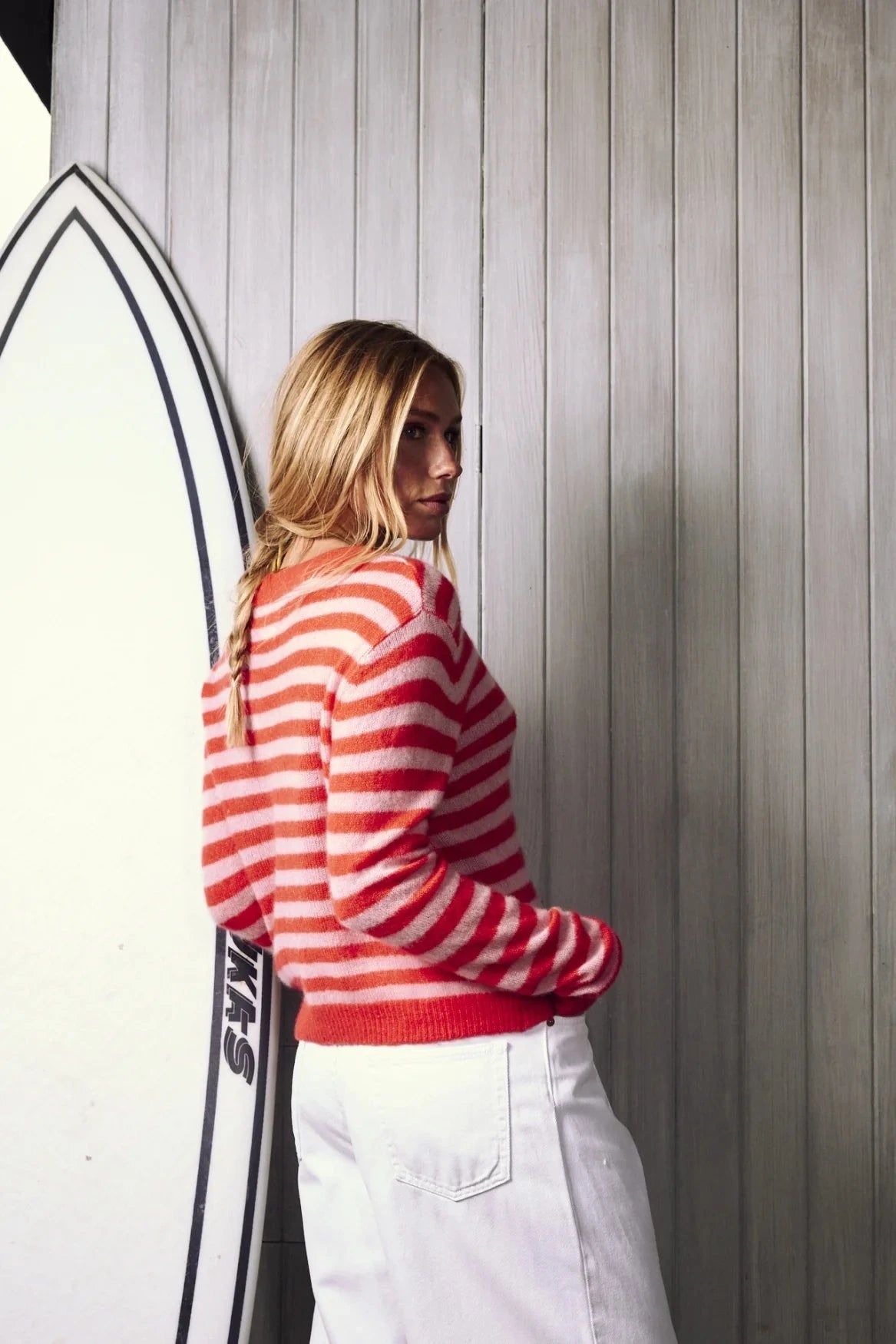 A fresh take on the Malou Cardi ~ now with classic stripes. Crafted in the softest cashmere–silk blend, this lightweight cardigan feels smooth on the skin and layers easily. Relaxed in feel yet refined in look, she strikes the perfect balance between ease and elevation. Easy for a neighbourhood stroll, elegant enough to slip on over a simple top for dinner.
