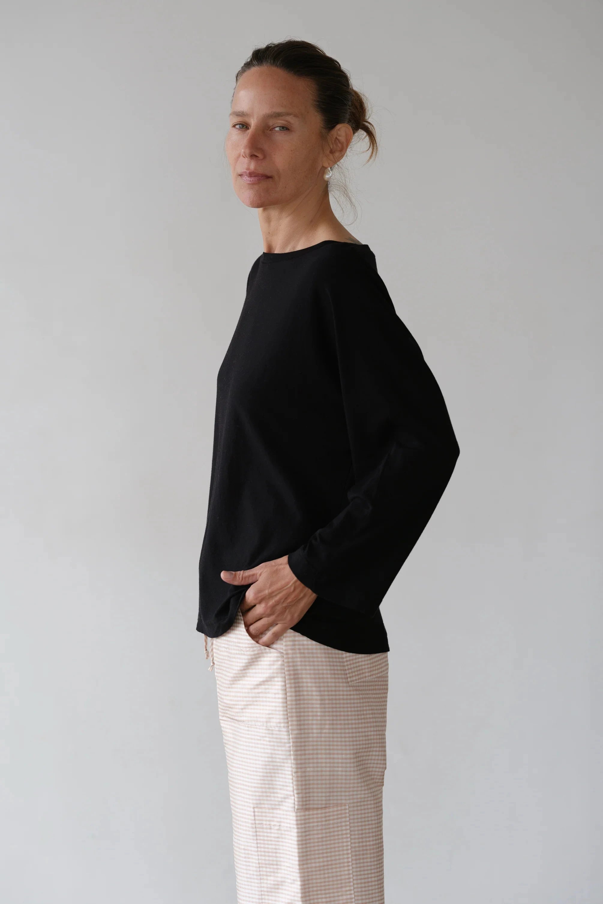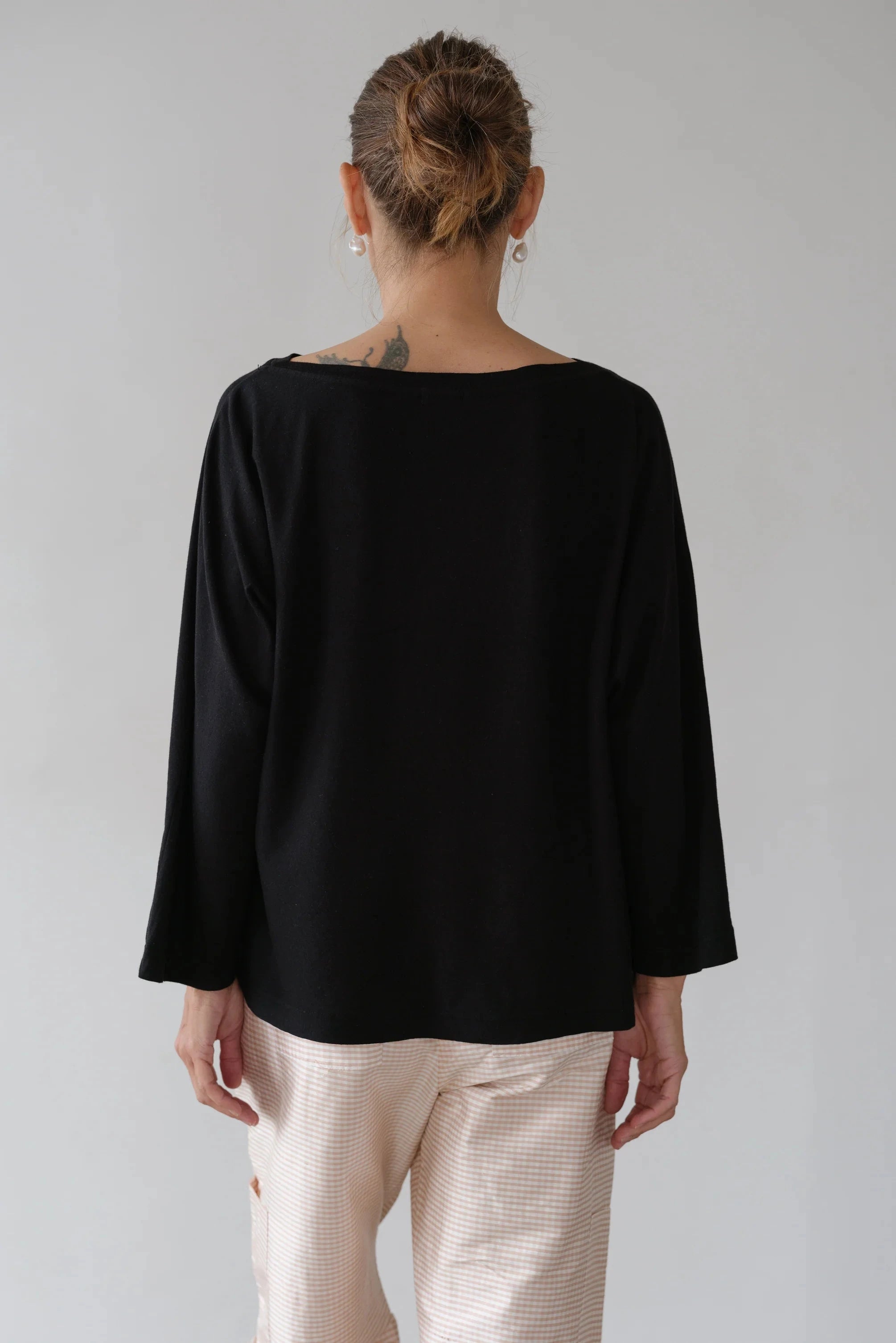 Donni The Jersey Relaxed Boatneck Long Sleeve Tee- Jet Black