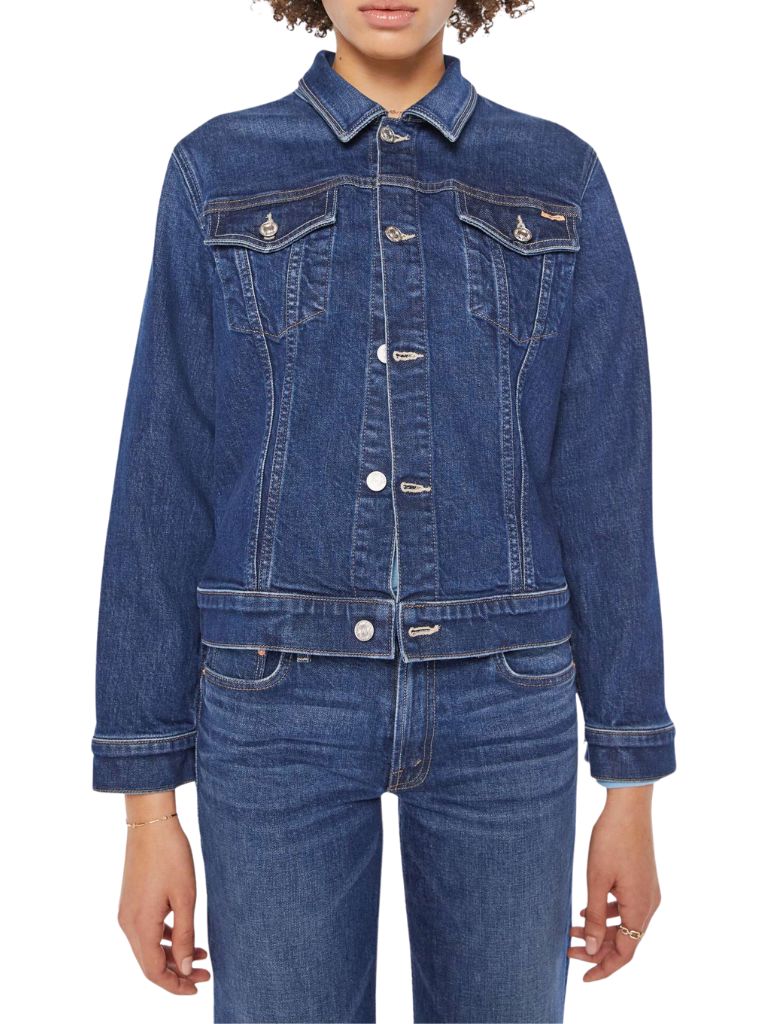 A classic denim jacket with front patch pockets and a slightly cropped fit. Made from semi-rigid SUPERIOR denim, Perfectly Imperfect is a vintage-inspired dark blue.
