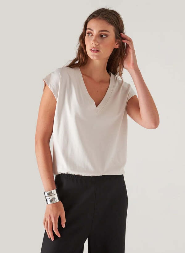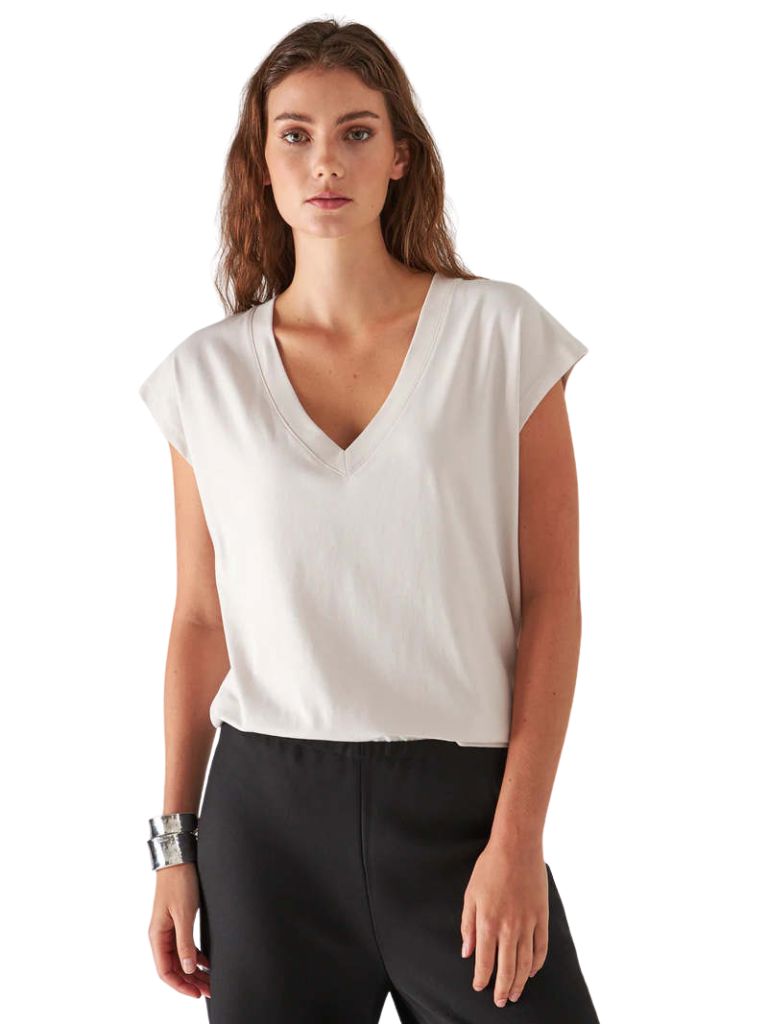 Our new pima stretch dolman v-neck by Patrick Assaraf is crafted in his iconic pima stretch fabrication. This silhouette is cut in a relaxed fit and features a statement neck trim, sharp shoulder and can be styled tucked into your favourite denim this season.