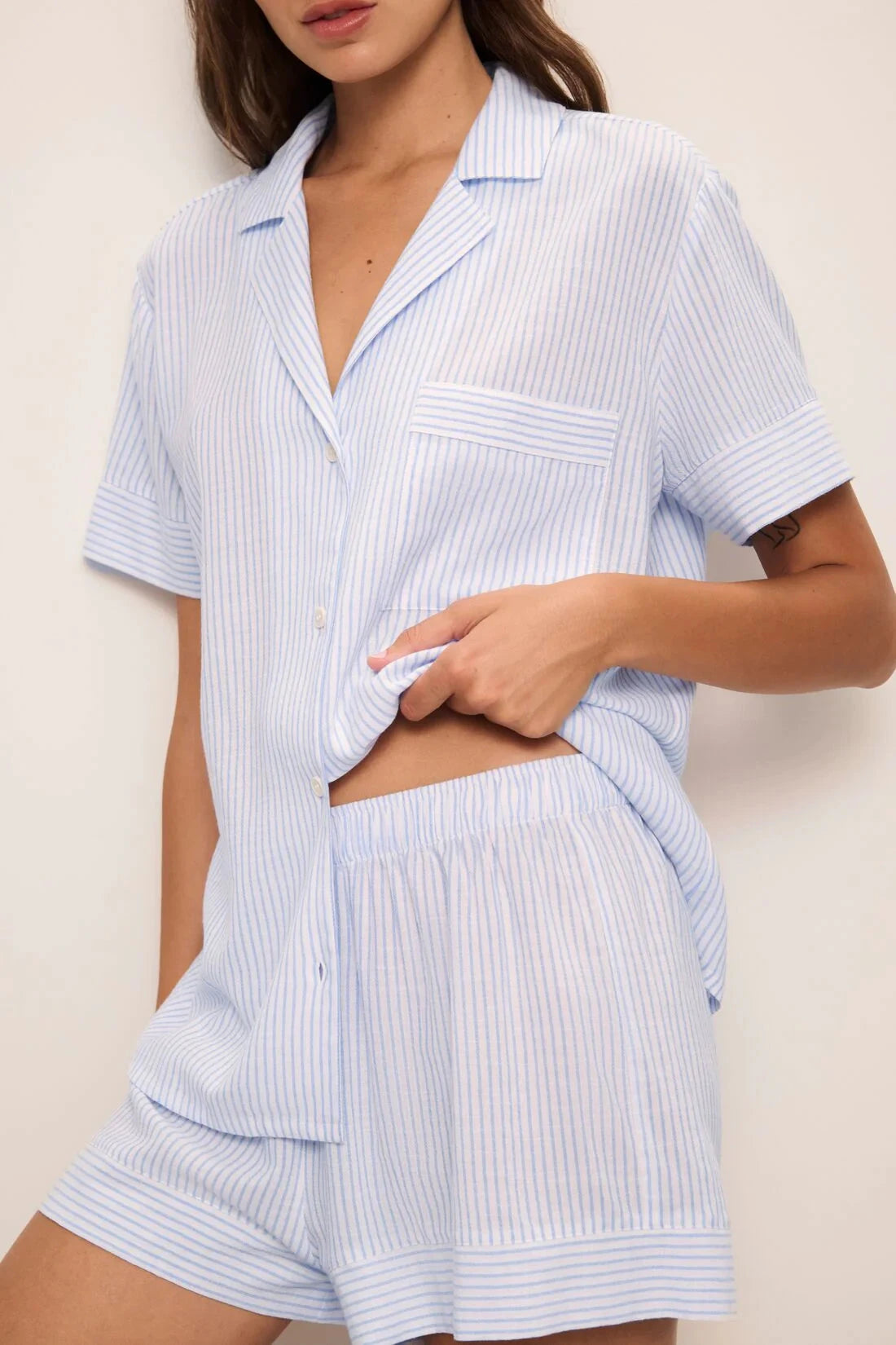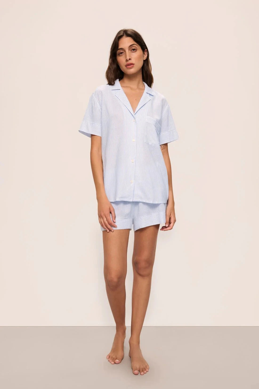 Eberjey Nautico Shortie Short PJ Set- White/Cornflower Blue - XS is backordered and will ship as soon as it is back in stock.