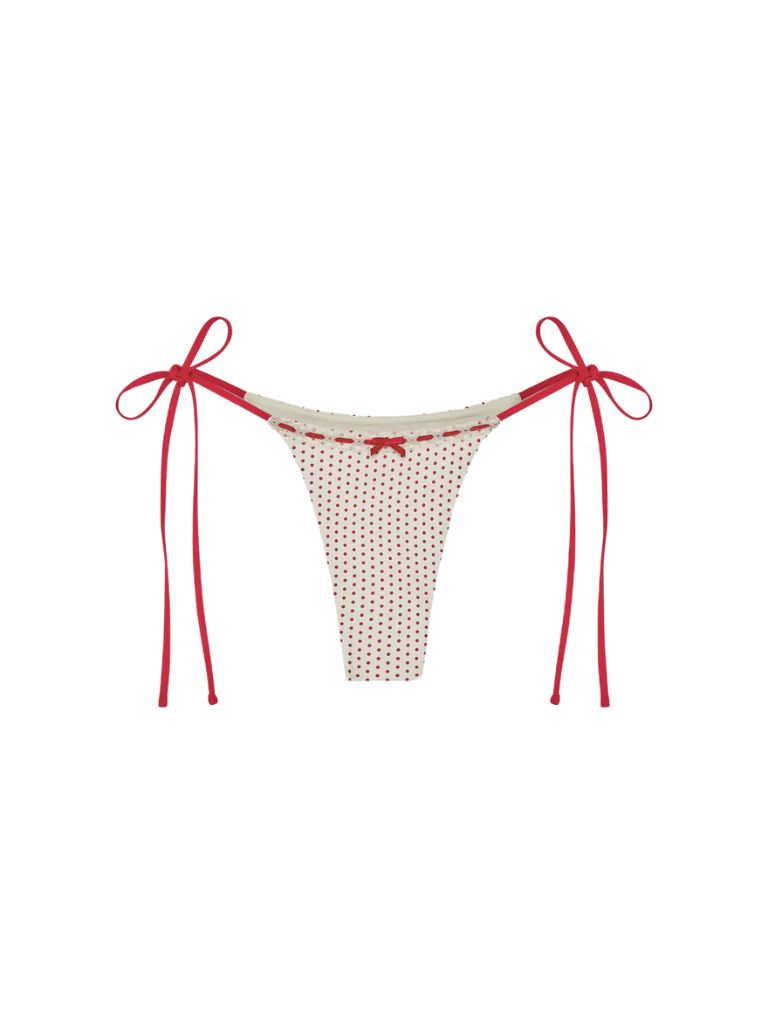 Turn heads in the Mackenzie polka dot bikini bottom. This bikini bottom is a timeless staple that'll never go out of style. Exclusively from the Bella Hadid x Frankies Bikinis collaboration. Wear with matching Angel bikini top.