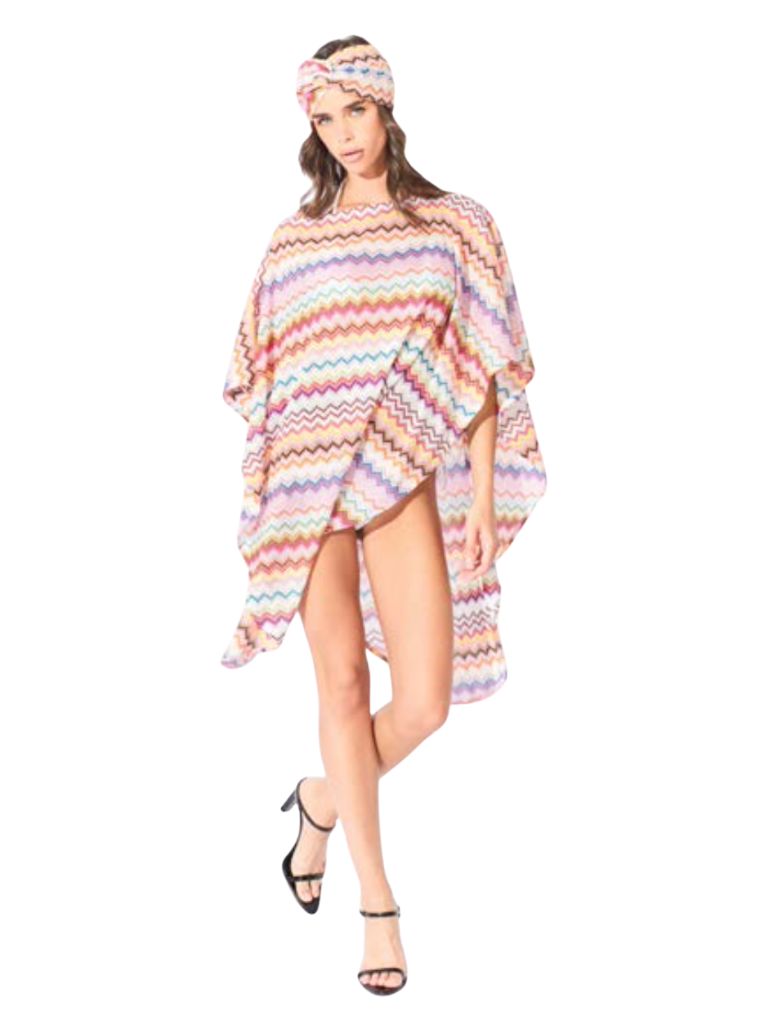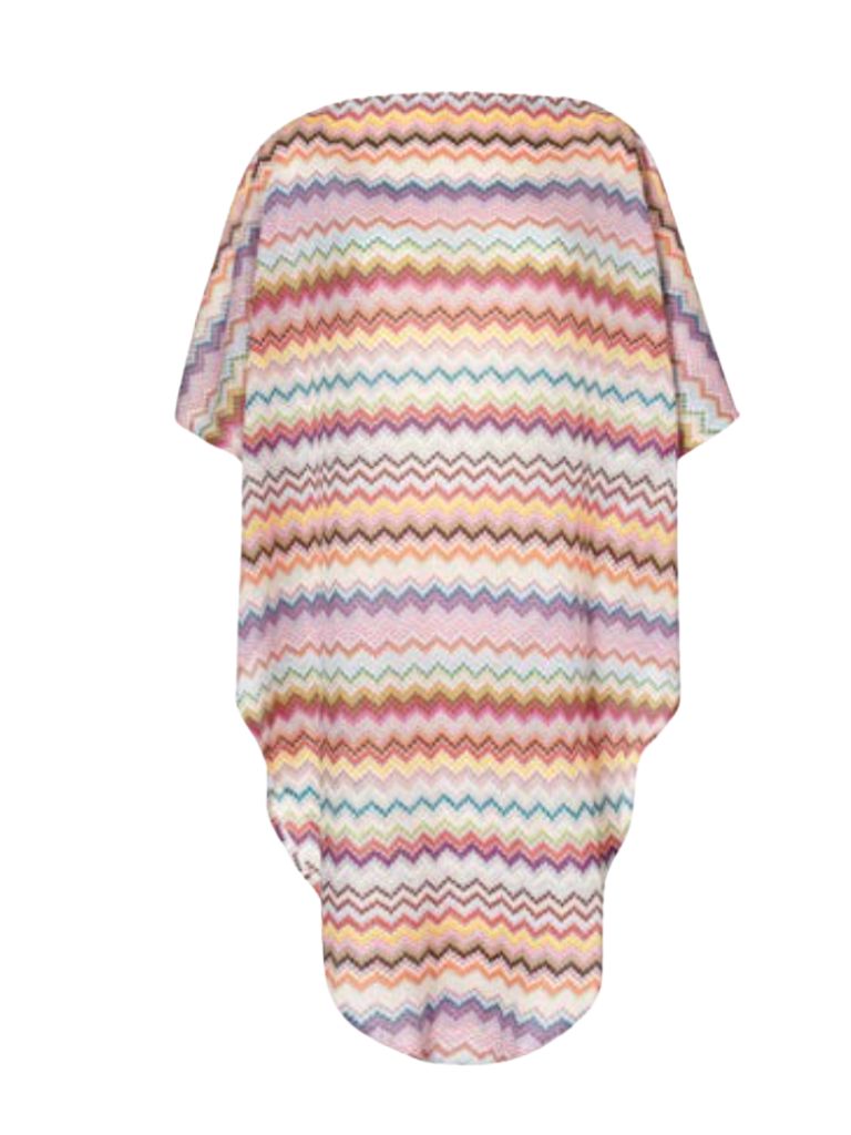 Brightly coloured midi length knit poncho with iconic Missoni zig zag pattern.