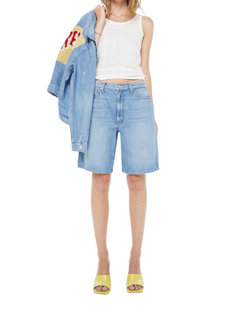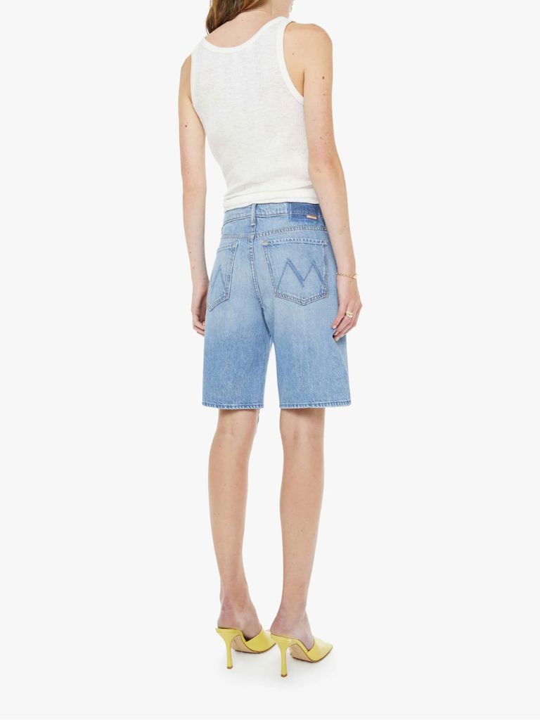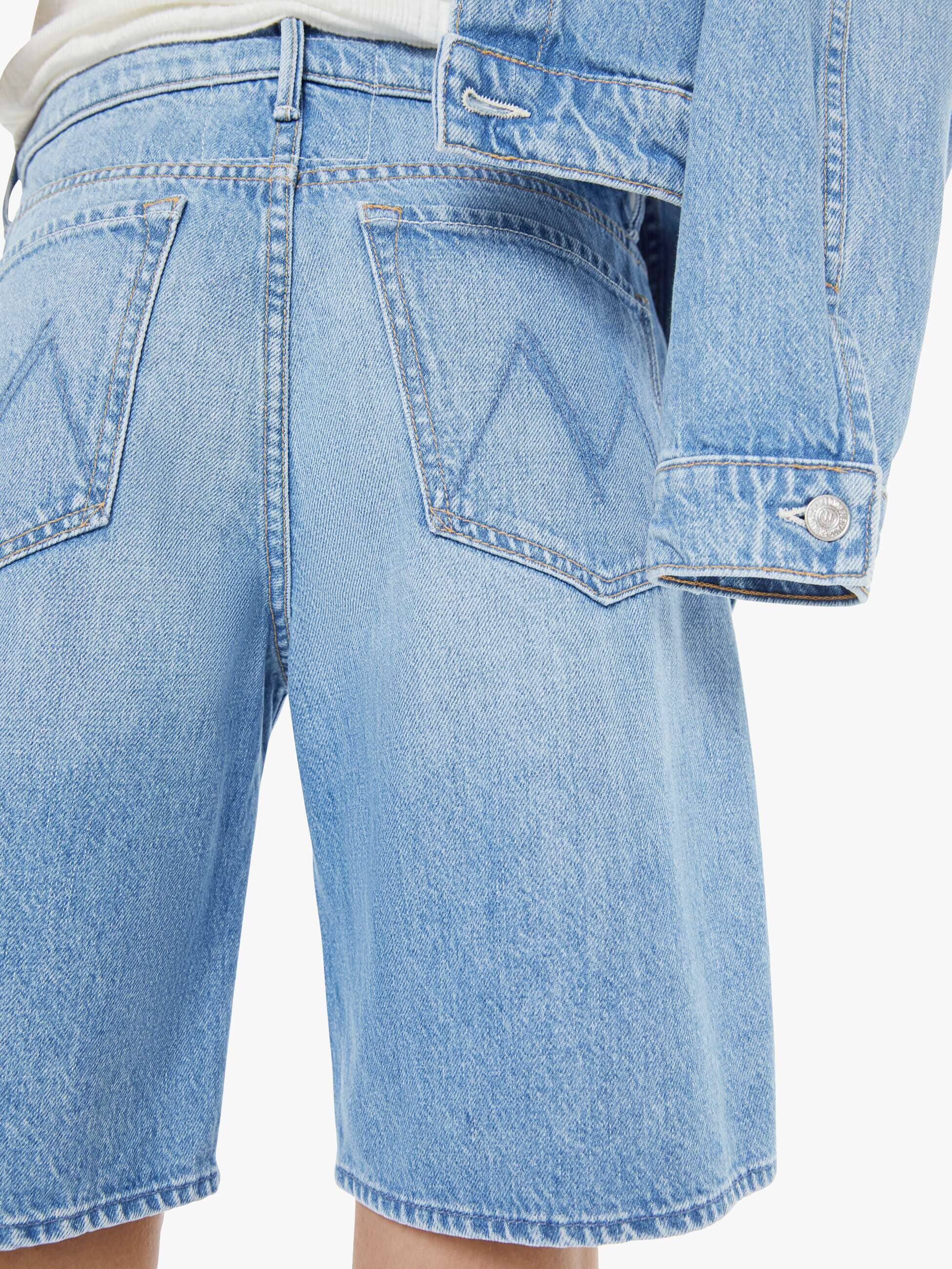 Wide-leg bermuda shorts with a high rise, relaxed fit, zip fly and a 9.25-inch inseam with a clean hem. Made from rigid SUPERIOR denim, Last Bite is a faded vintage blue with subtle whiskering.