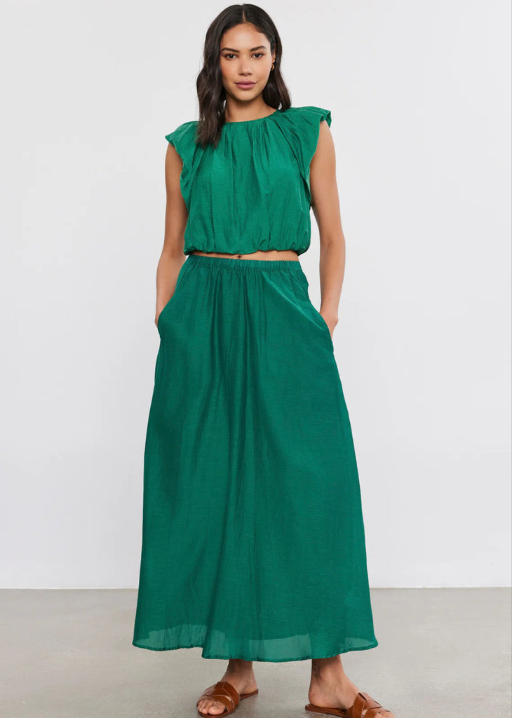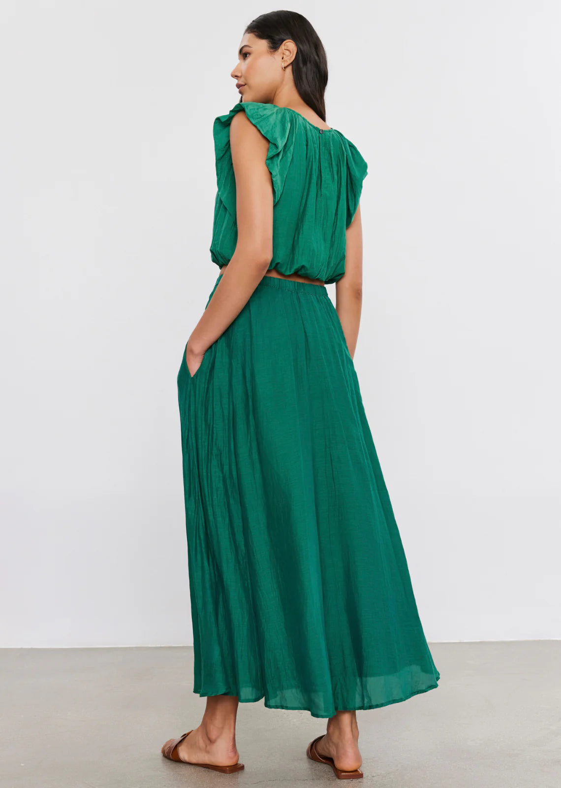 A new silhouette for now and later. Crafted from a silk cotton voile that has a hint-of-sheen, this lined maxi has a beautiful drape, as well as the always-needed pockets. Dress it up or down. Wear with matching Amora Blouse for a pulled together set.